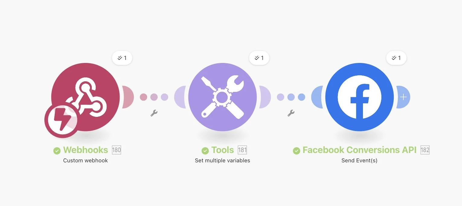 For this, there are tons of solutions like Tracklution, Stape, make.com or my custom tracking app I’ve developed and can install for you.